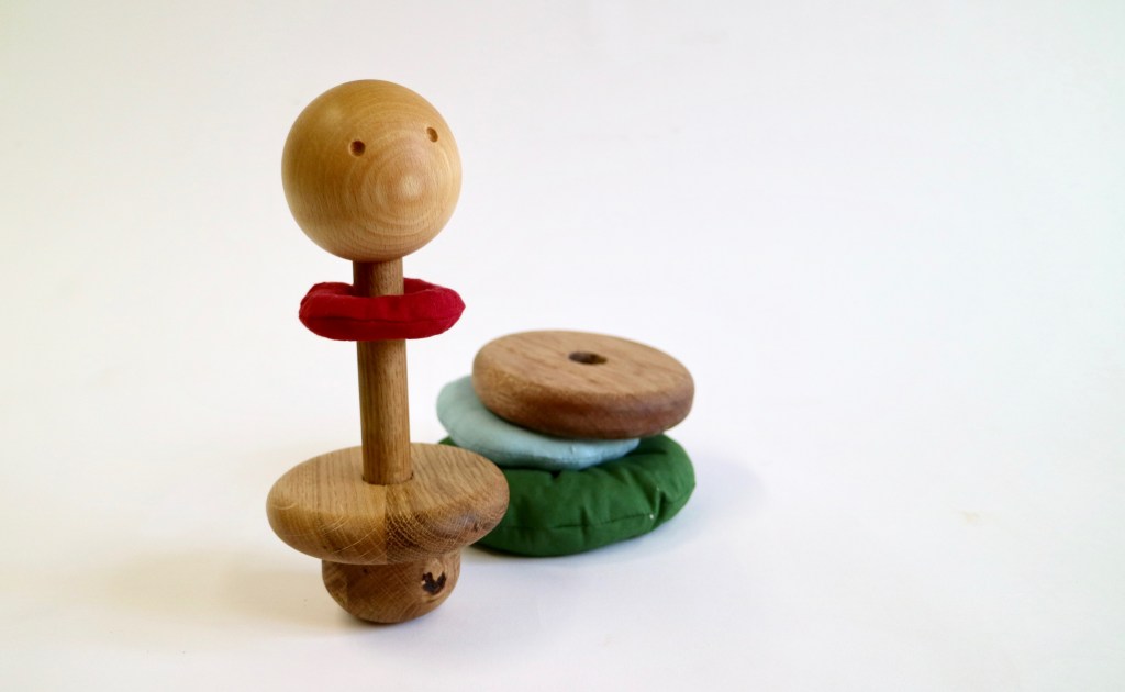 emil ist ein stapelspiel, das durch materialdiversität möglichst viele taktile und auditive anreize bietet.