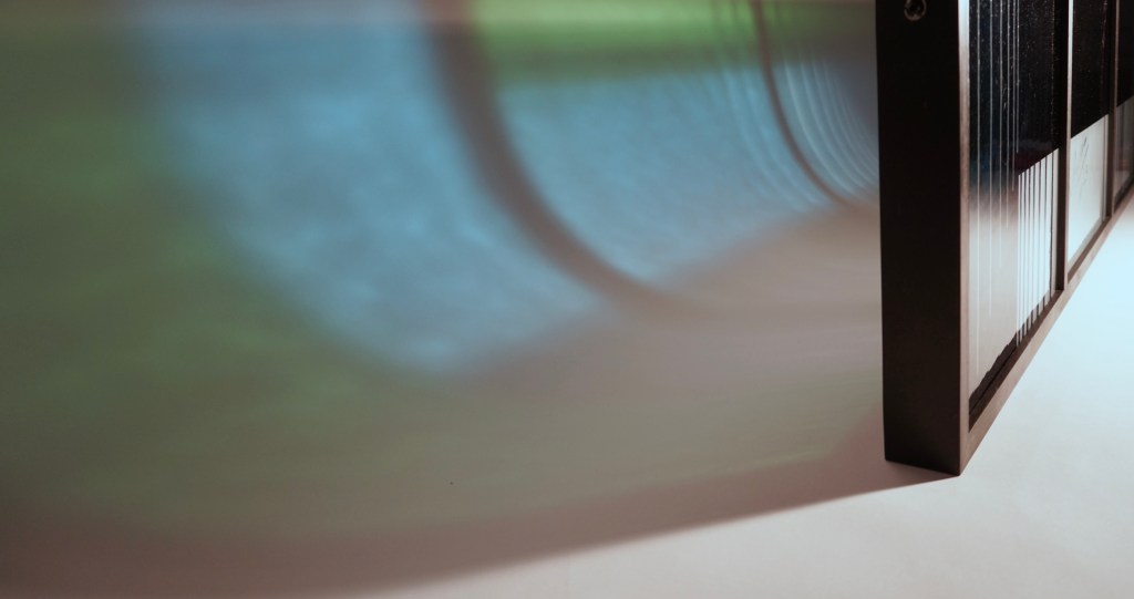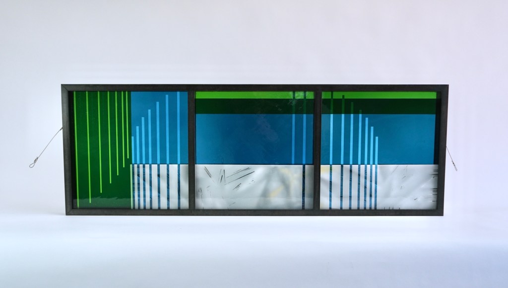 „aurora“ ist mein meisterstück und thematisiert die lichtspiele am himmel des polarkreises in mehren hintereinander gefassten scheiben. die holzschnitte von lionel feininger sind eine weitere inspirationsquelle. jeder blickwinkel bietet ein ganz neues erscheinungsbild und verbindet neue gestaltungsmittel mit alten techniken der klassischen glasmalerei.